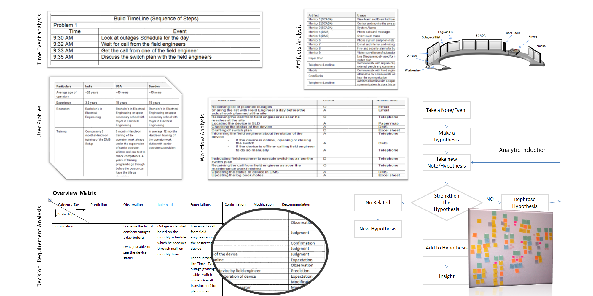 decision requirement analysis, Time event analysis, and analytic induction (Affinity diagram).